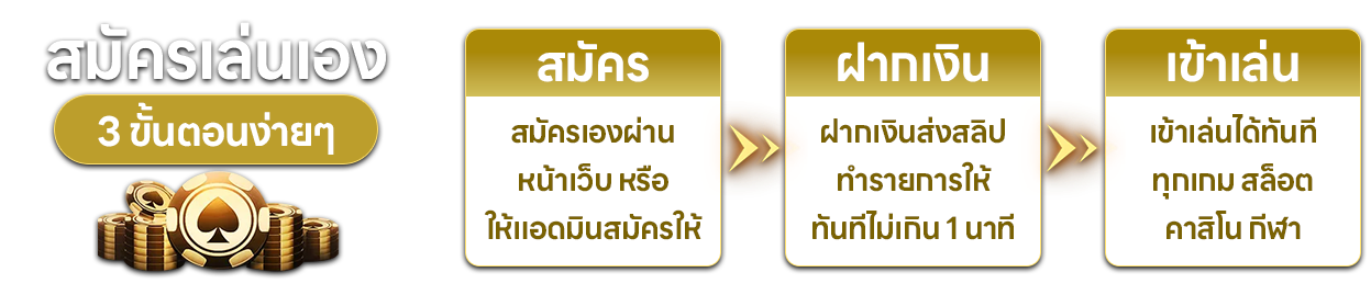 ตอบ : - กรอกข้อมูลส่วนตัวผ่านหน้าเว็บไซต์ ยืนยันเบอร์โทรศัพท์ แนบสำเนาบัตรประชาชนและหน้าสมุดบัญชี ใช้เวลาอนุมัติไม่เกิน 5 นาที จากนั้นสามารถเริ่มเล่นได้ทันที